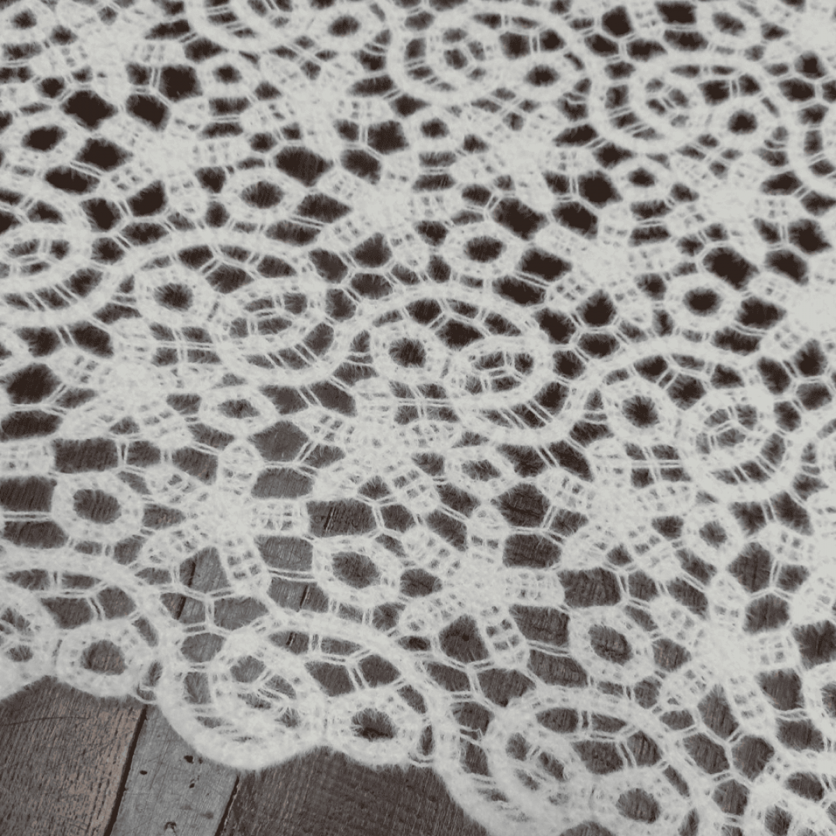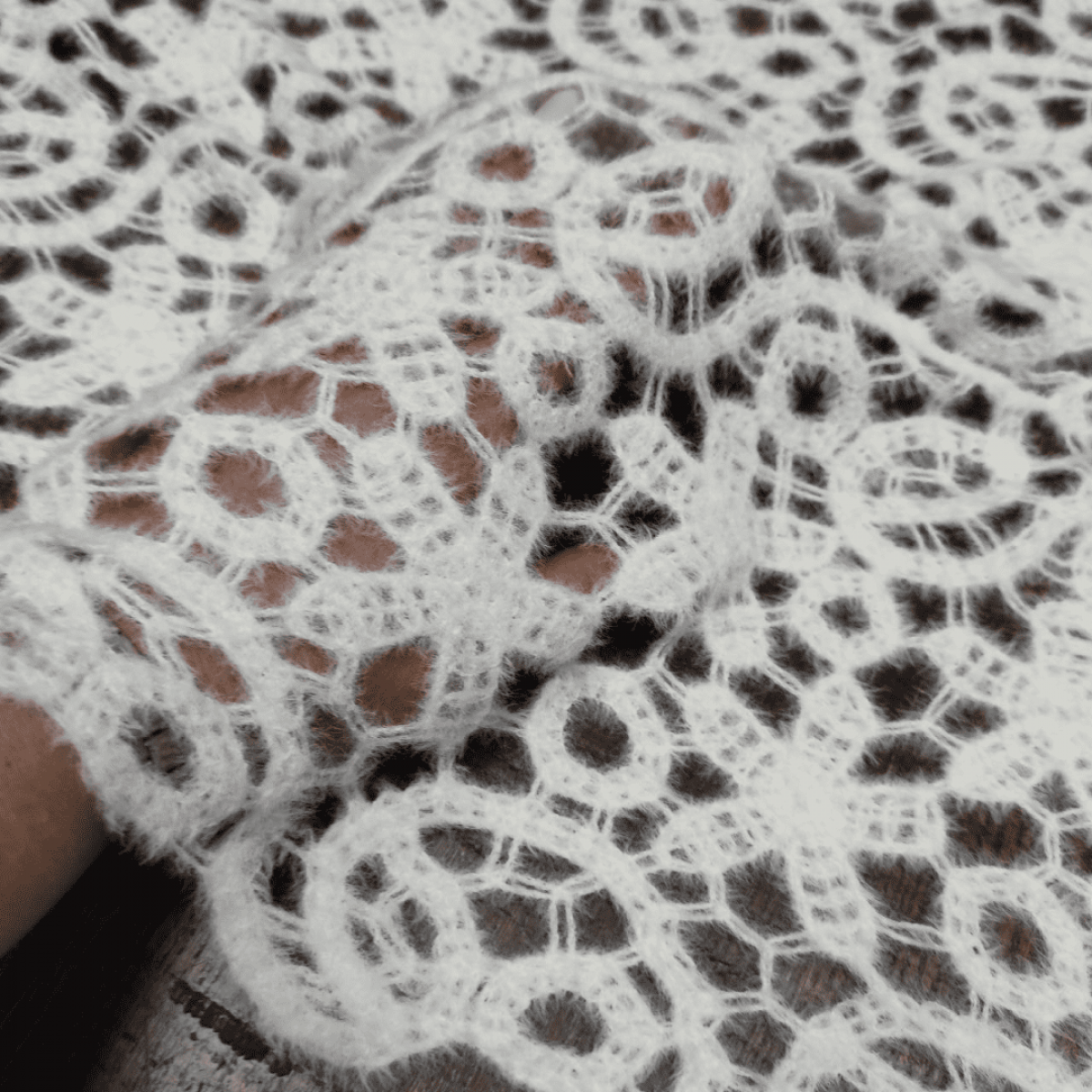 Ангора ажурна - це високоякісне мереживне полотно середньої щільності з ажурним малюнком у вигляді квітів та завитків повітряного плетіння.