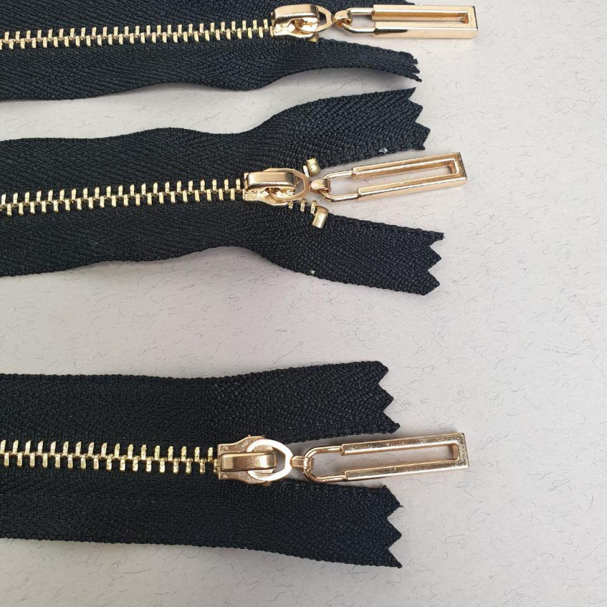 Блискавка металева, не роз'ємна, колір ланки - золотий.