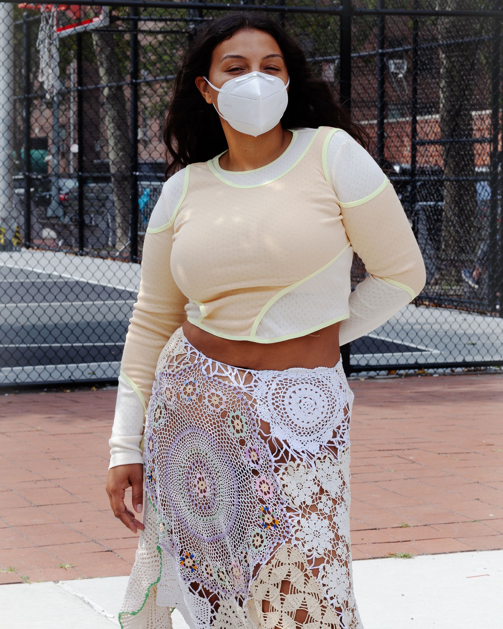 У колекції нью-йоркського бренду Eckhaus Latta також використано мереживо, ніби зшите з бабусиних серветок, але як же сучасно і стильно це виглядає.