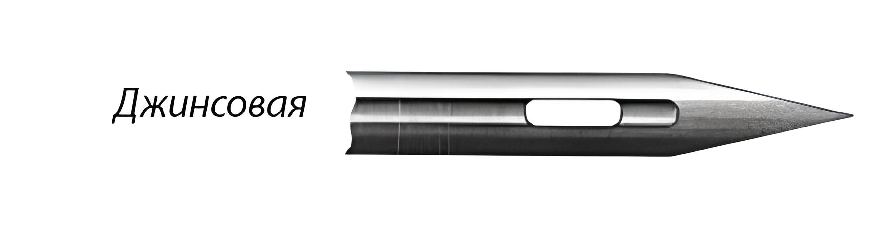 "Джинсові" голки H-J (jeans) - для щільних тканин типу джинсу, саржі, брезента. У таких голок гостре заточення вістря та кінчика та посилений стрижень.