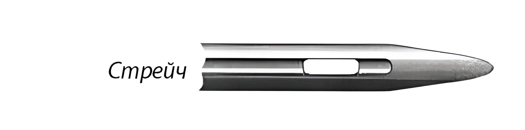 Голки стрейч H-S (stretch) – із закругленим вістрям та заглибленим жолобком, що запобігає пропускам стібків при розтягуванні матеріалу. Такі голки використовують для шиття трикотажу середньої щільності та еластичних синтетичних тканин.
