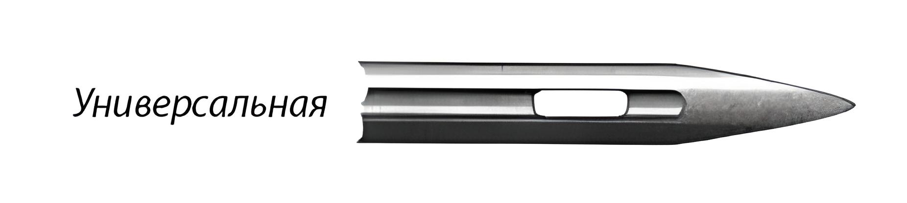 Універсальні голки з маркуванням – H (universal). У них злегка закруглене вістря та різні розміри від 60 до 110, їх використовують для шиття простих тканин.