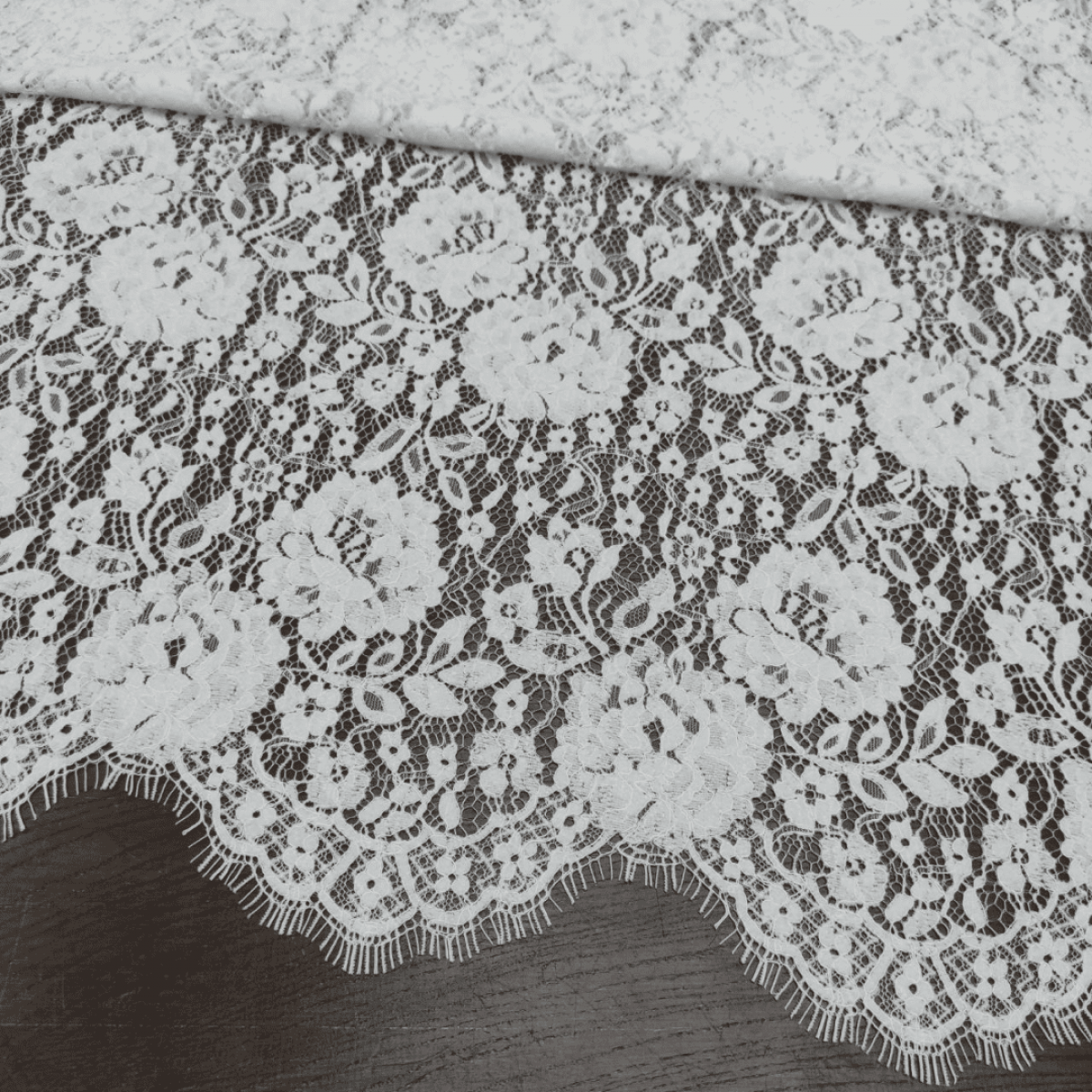 Неймовірна тканина поєднує в собі легкість гіпюру та м'якість оксамиту. Купонна тканина в рулонах. Купон має фігурний край з віями з двох сторін, що дозволяє не обробляти край виробу. Малюнок по краю обшитий тонкою ниточкою, що робить його більш виразним.Оксамитова фактура квіткового дизайну на тонкій сітці стане прекрасним доповненням будь-якого образу.