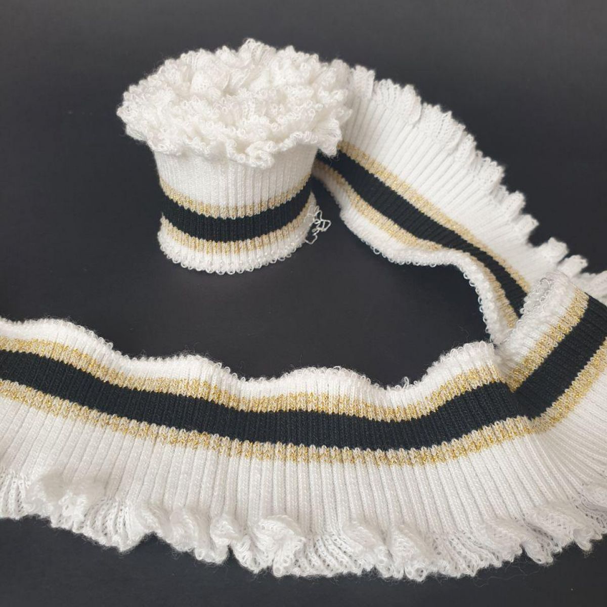 Манжет трикотажний, декоративний, м'який, еластичний, з хвилястим краєм з одного боку.