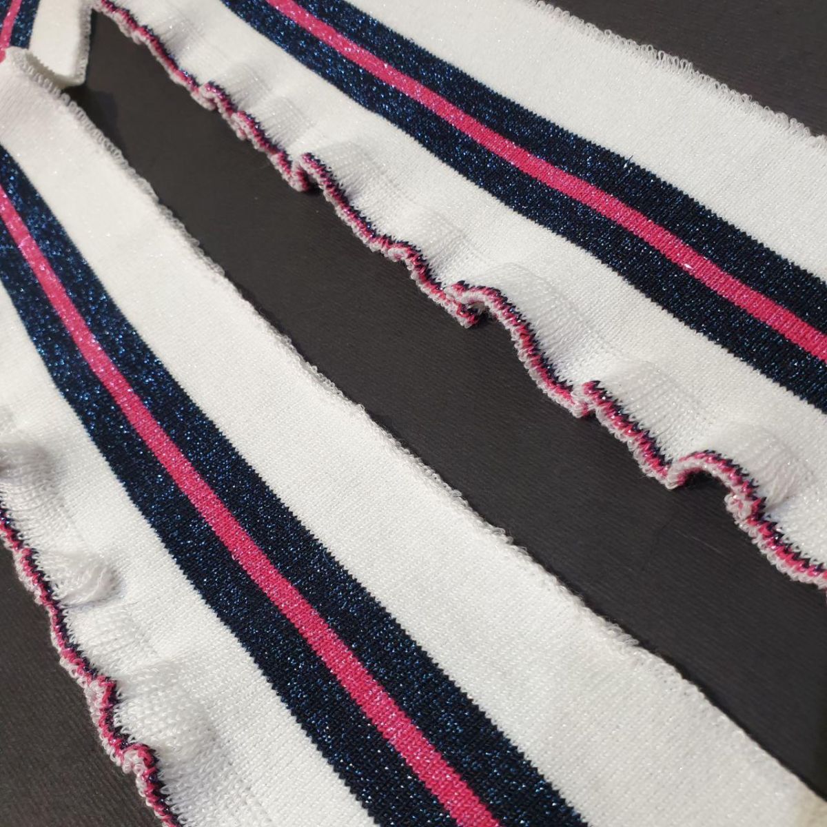 Колір: білий з чорними смужками з синьою люрексовою ниткою і з малиновою смужкою з люрексом