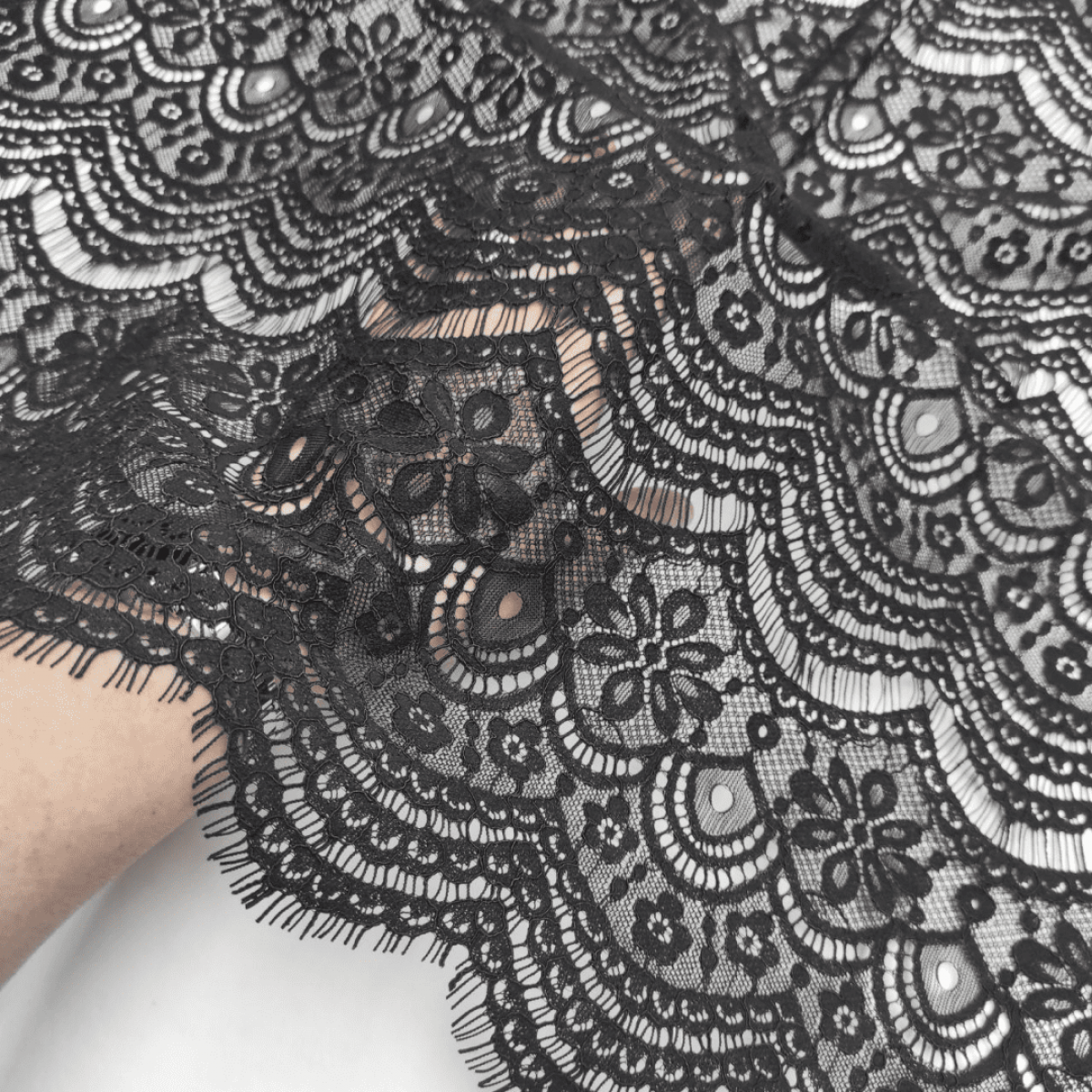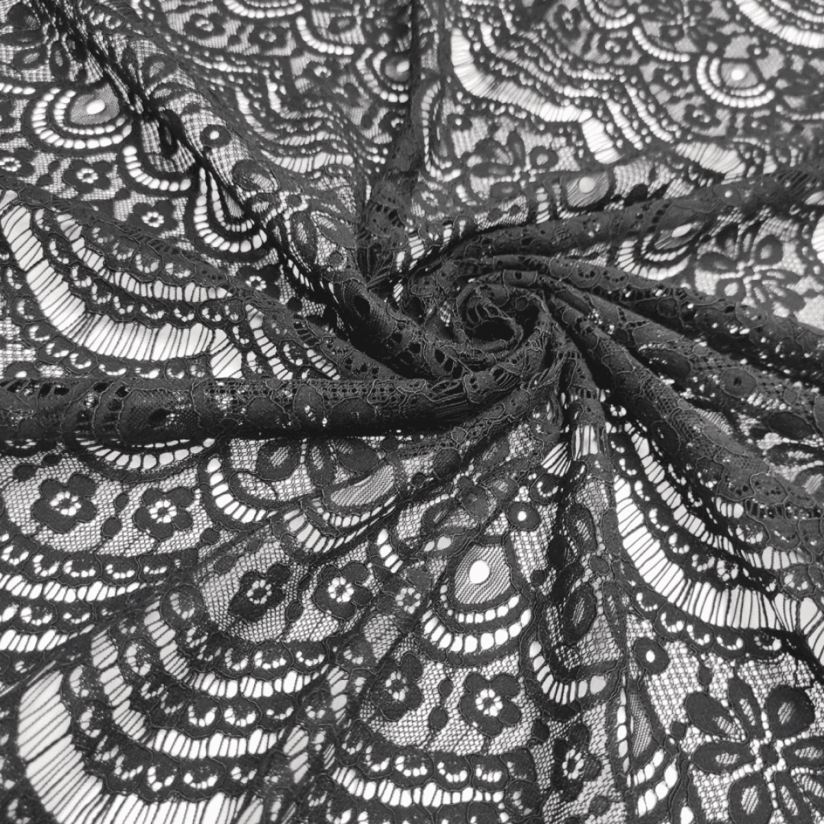Мереживна тканина "Bloom" з кордовою ниткою (5152-1_01) Чорна