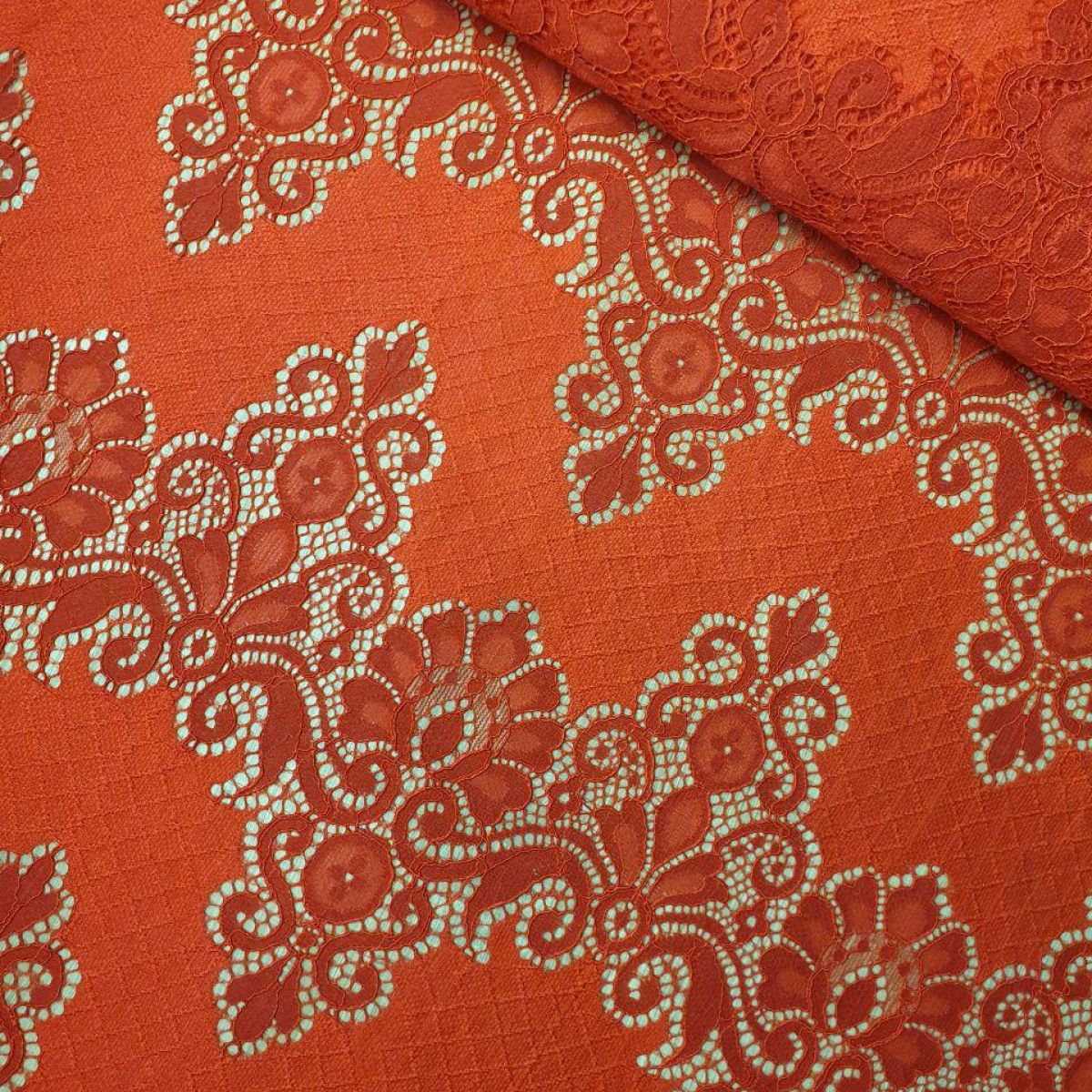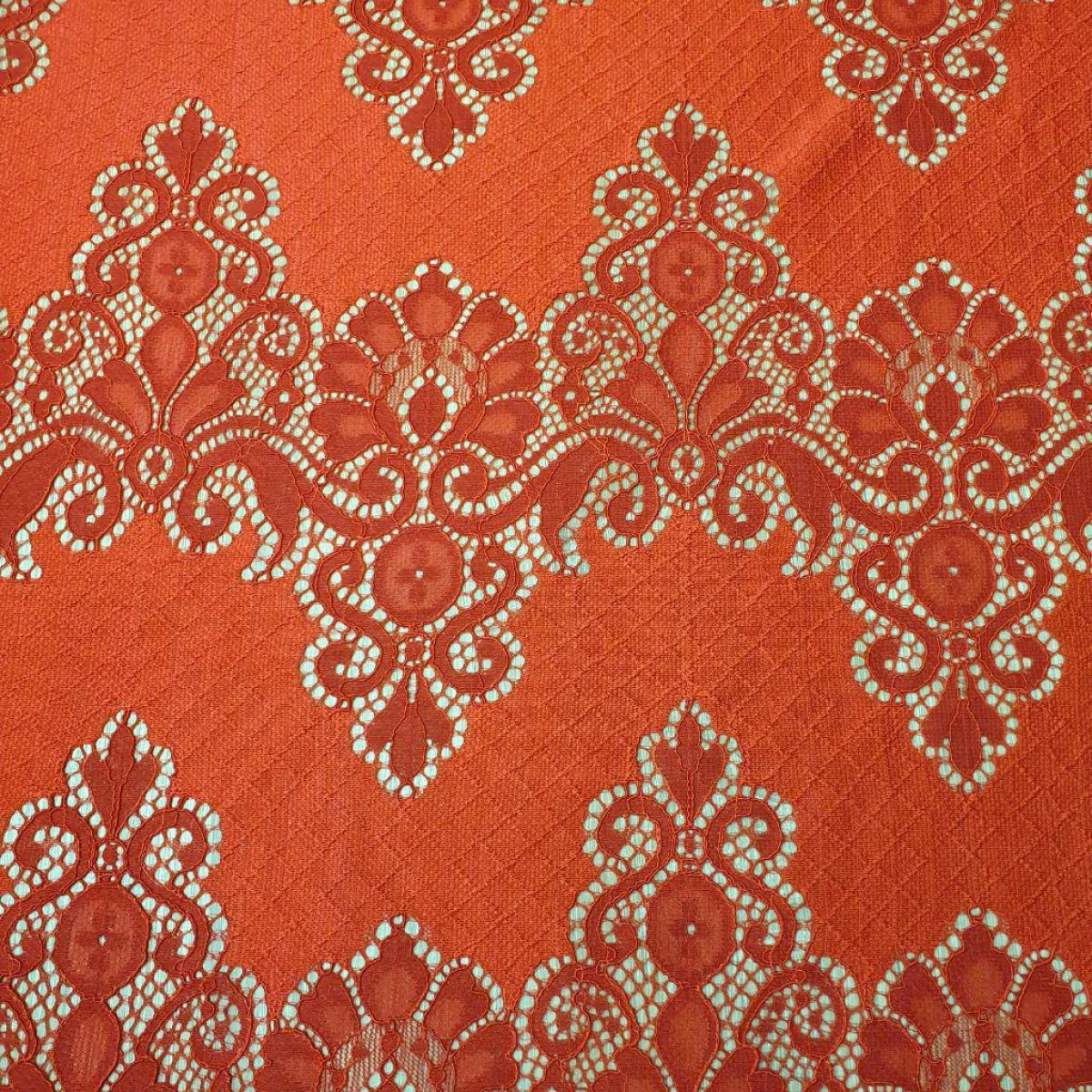 Тканина приємна, м'яка, в міру щільна, добре тримає форму. Мереживна тканина з кордовою ниткою прекрасно підійде для пошиття трендових блуз з об'ємними рукавами, спідниць, суконь.