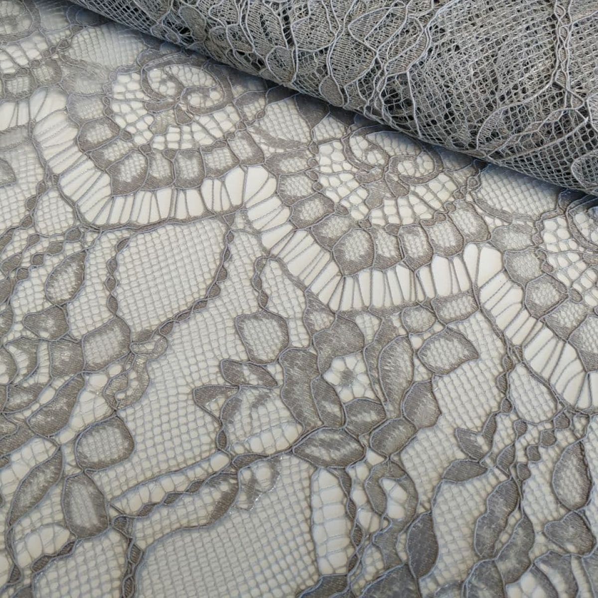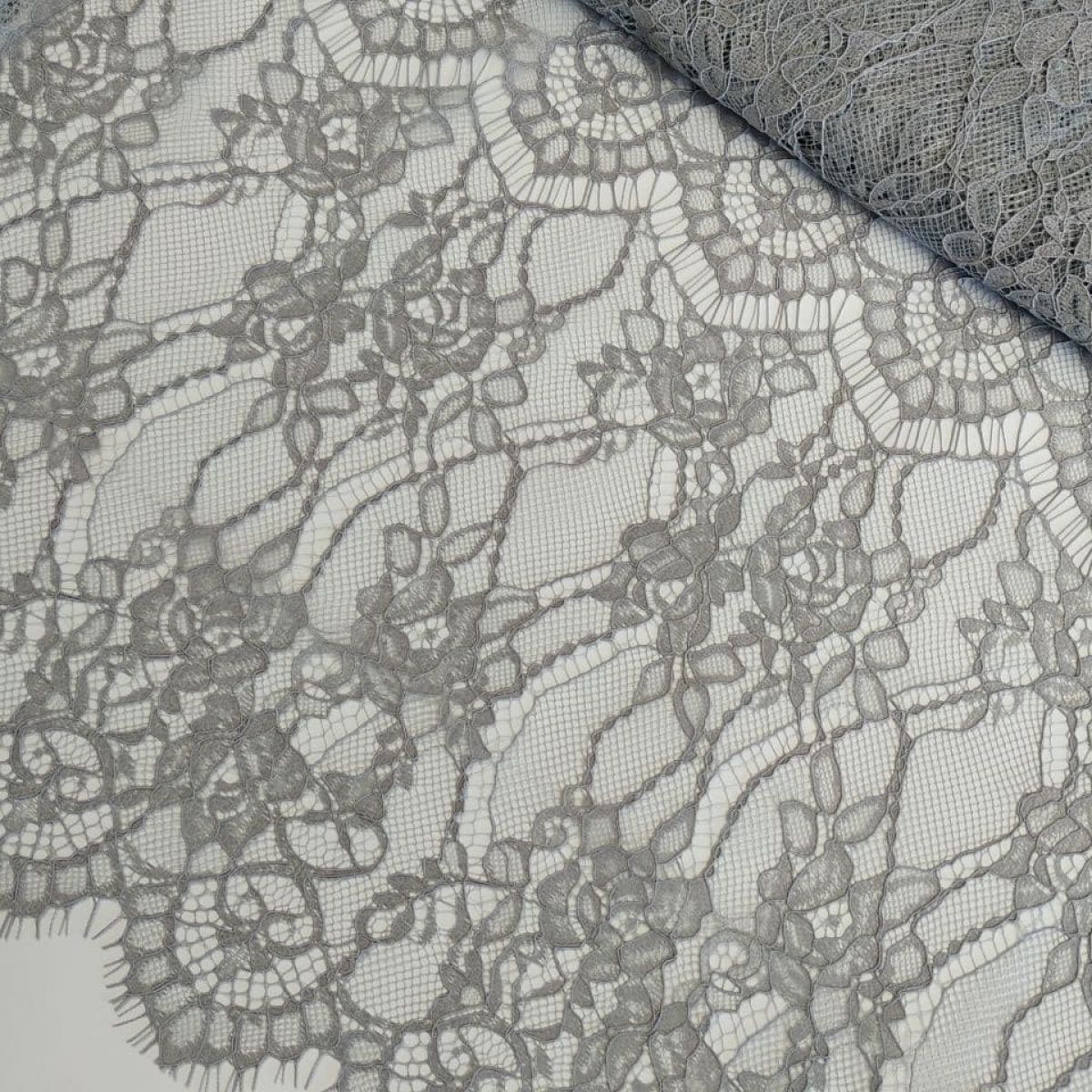 Мереживна тканина "Stella" з кордовою ниткою (70190G_03) Сірий (сталевий)