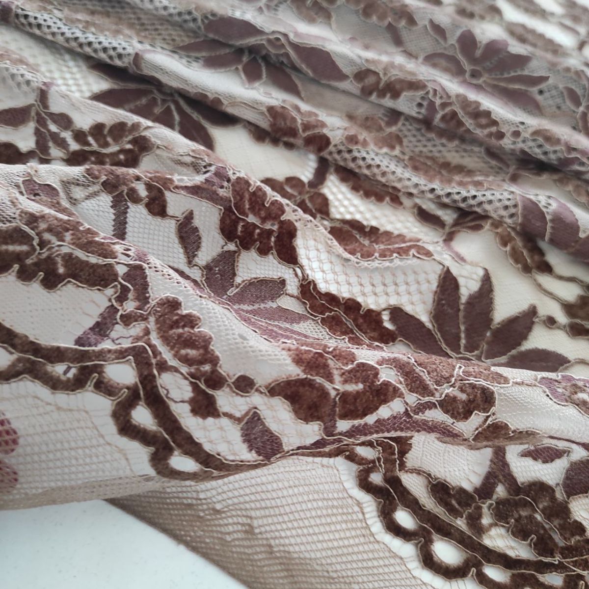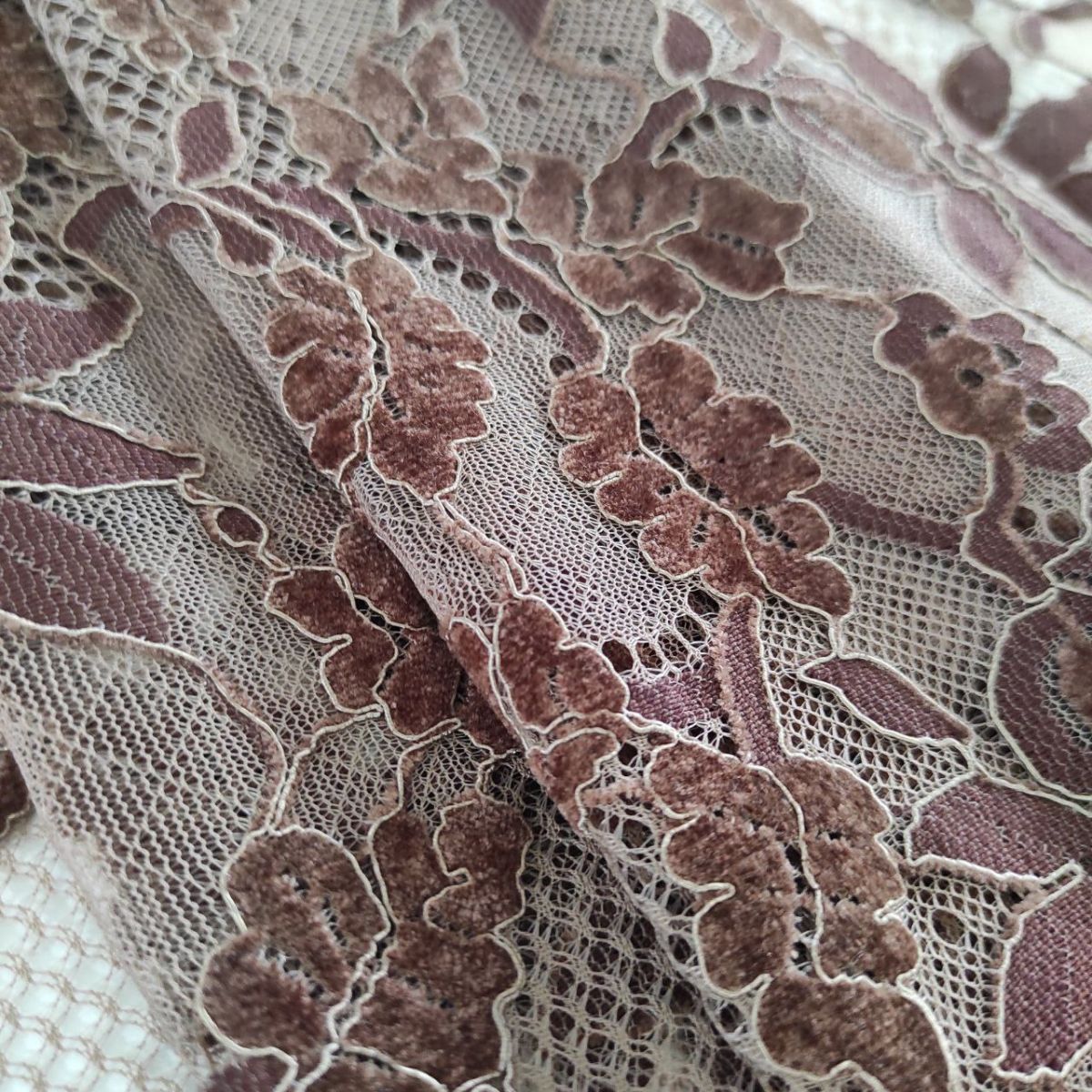 Мереживна тканина з велюром "Cinnamon" (3127_16), шоколад