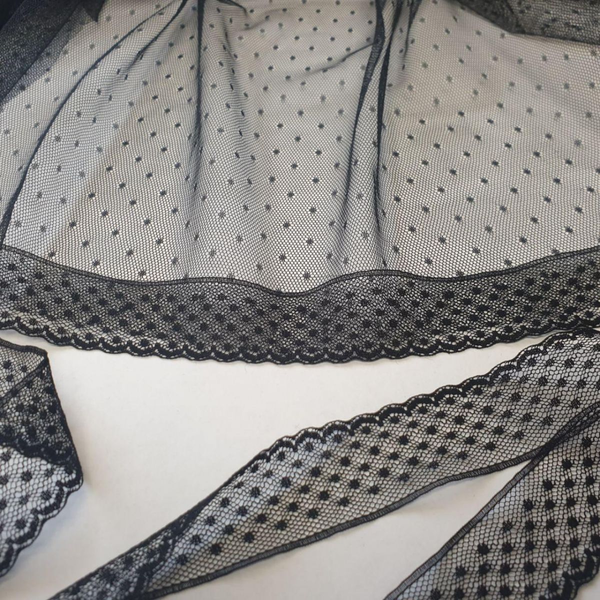 Мереживо на сітці вузьке стане чудовою прикрасою краю виробу або вставкою.