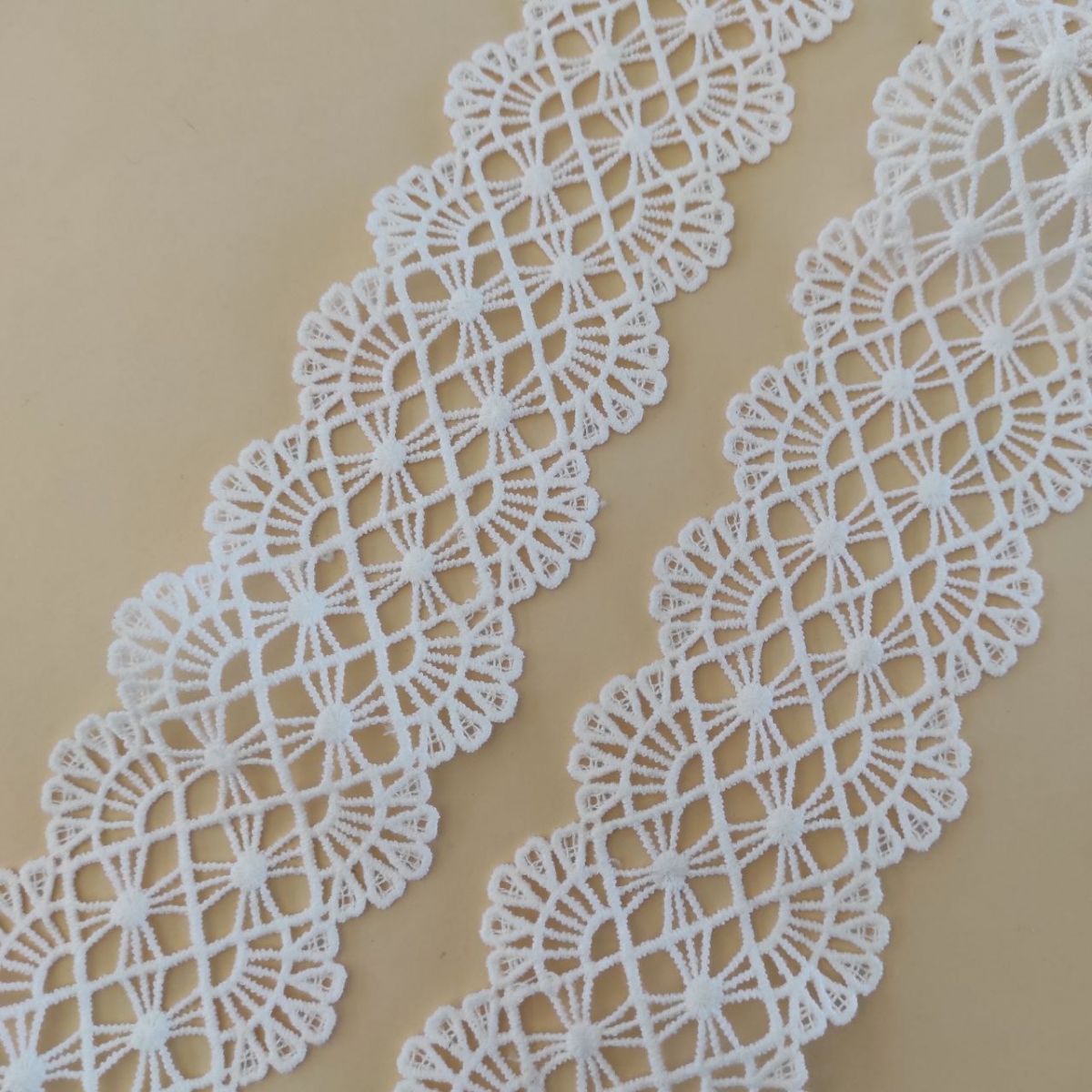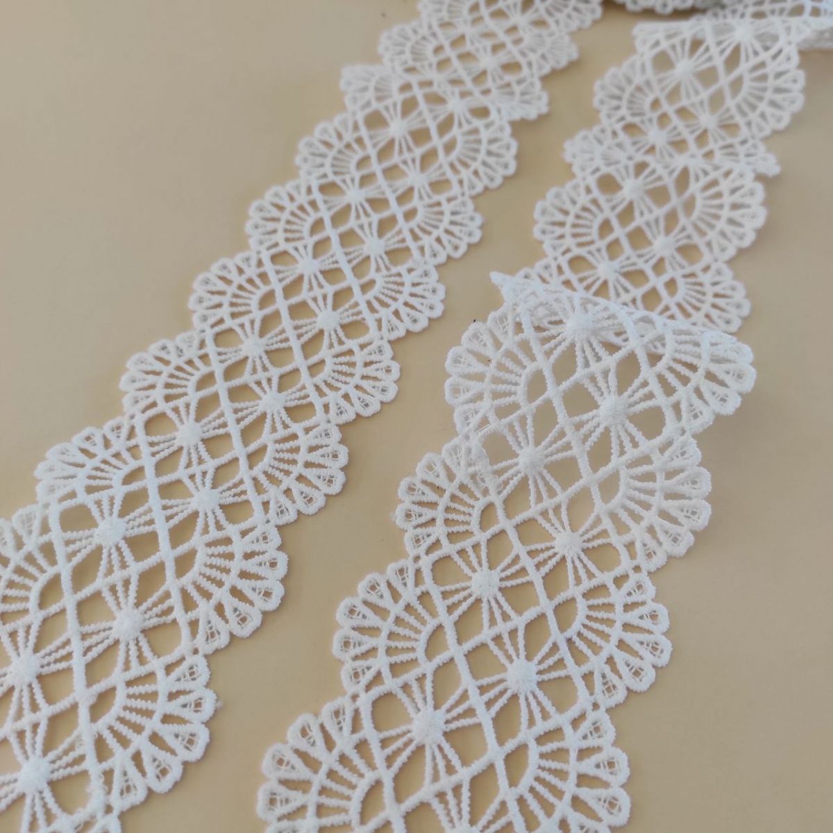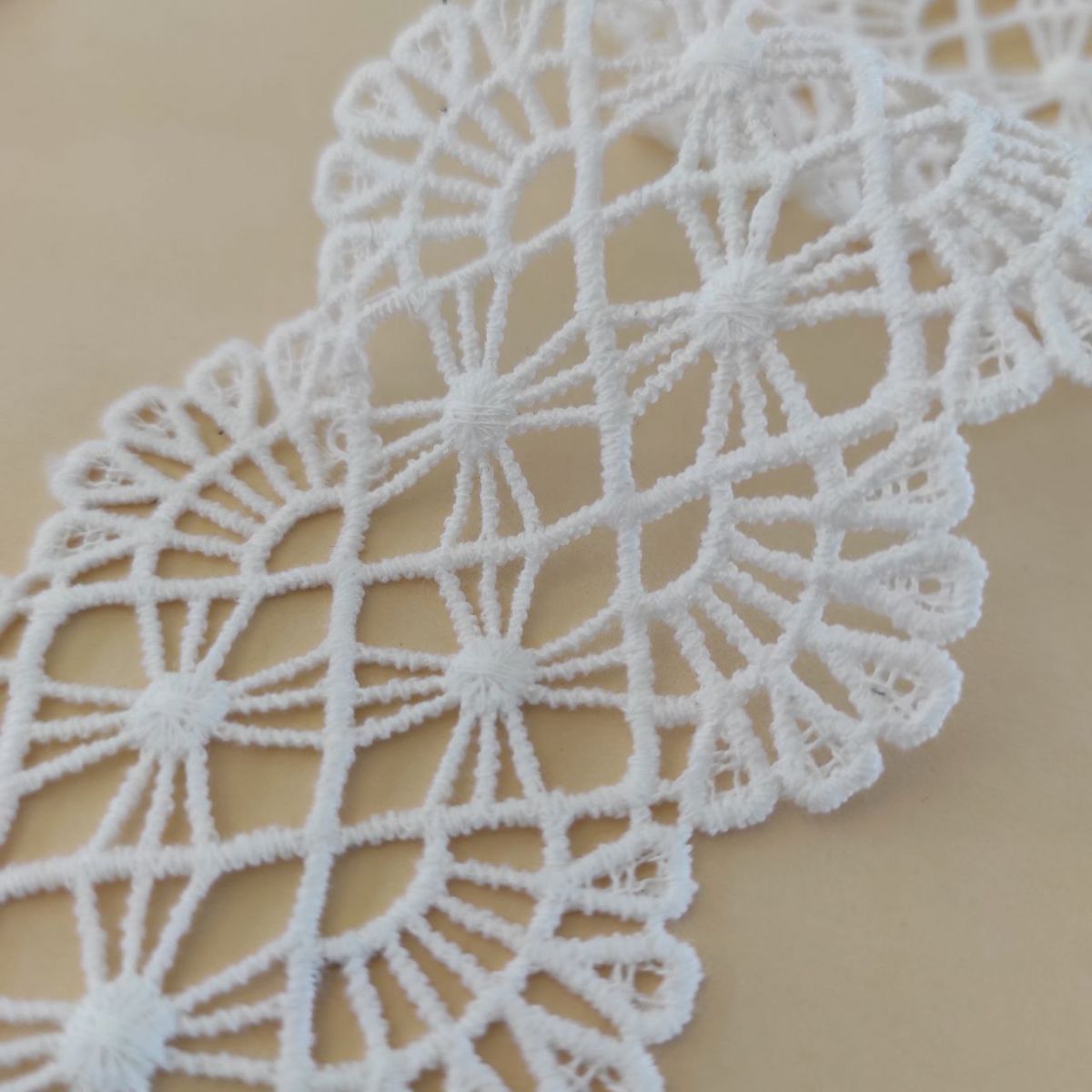 Мереживо макраме, ширина 6,5 см, надзвичайно популярно цього сезону. Застосовується як у оздобленні одягу, так і в інтер'єрі. Продається рулонами по 13,6 метрів.