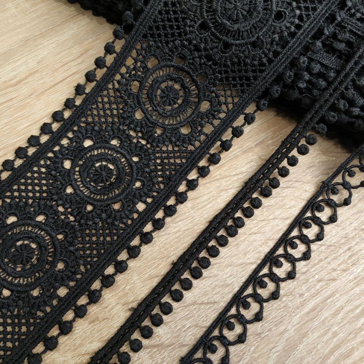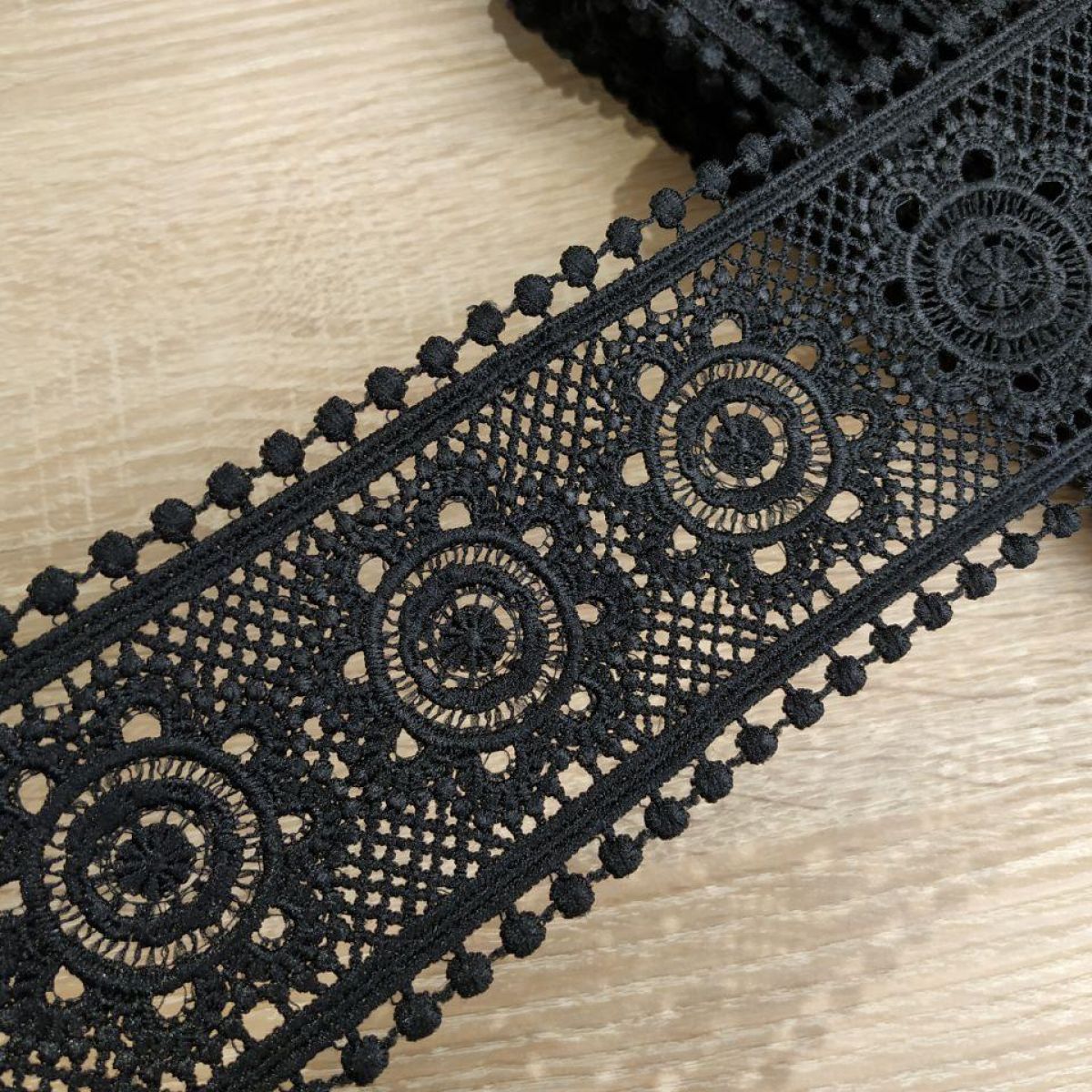 Мереживо натуральне 8 см 0168_01 FW20 Чорний рулон 8м