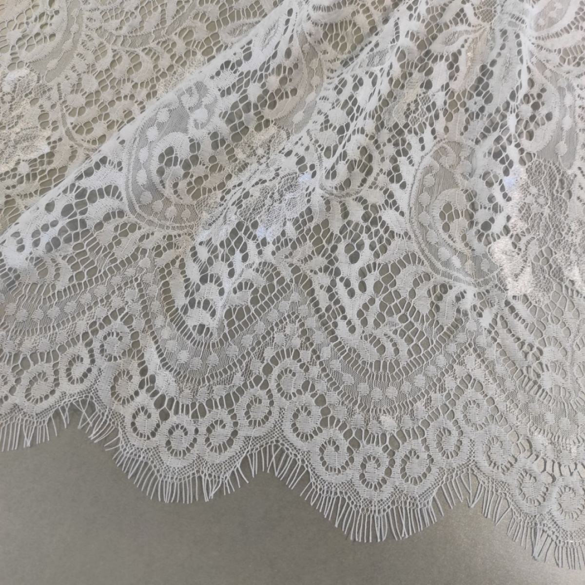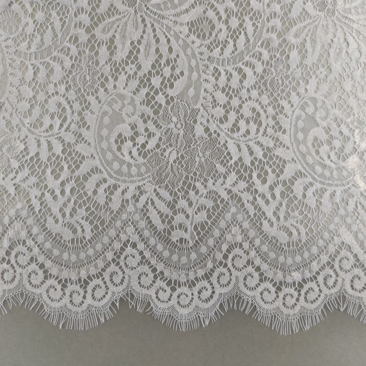 Якісне тонке плетіння з красивим квітковим малюнком та ажурним краєм із віями з двох сторін. Продається купонами 3*1,5 метри.