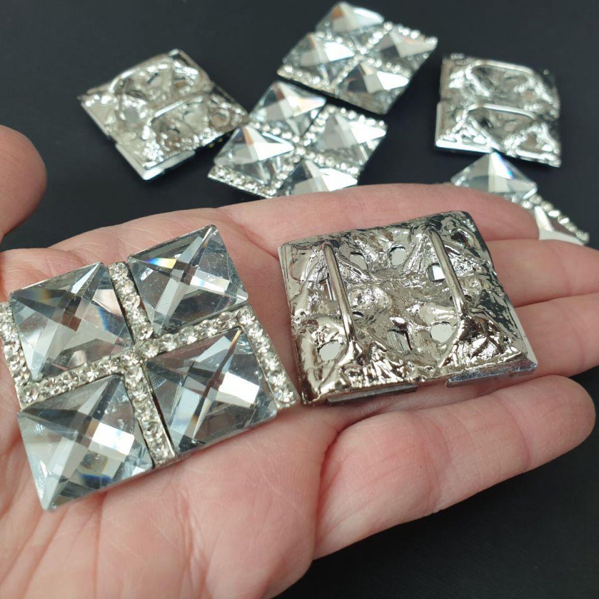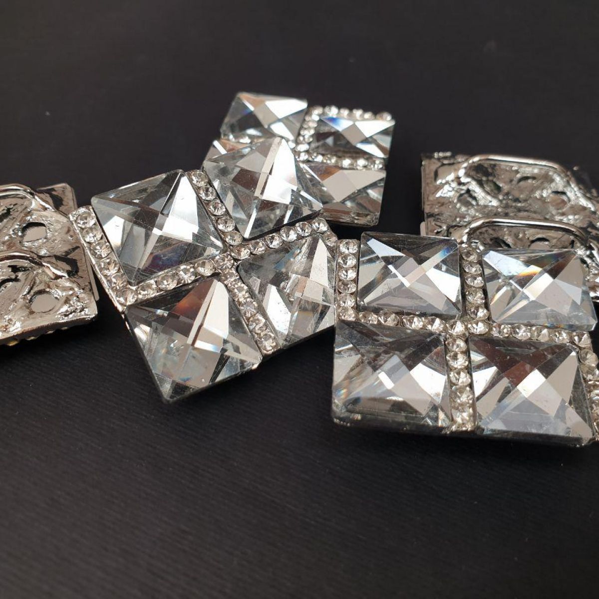 Металевий декор, пряжка, брошка з камінням, скло.