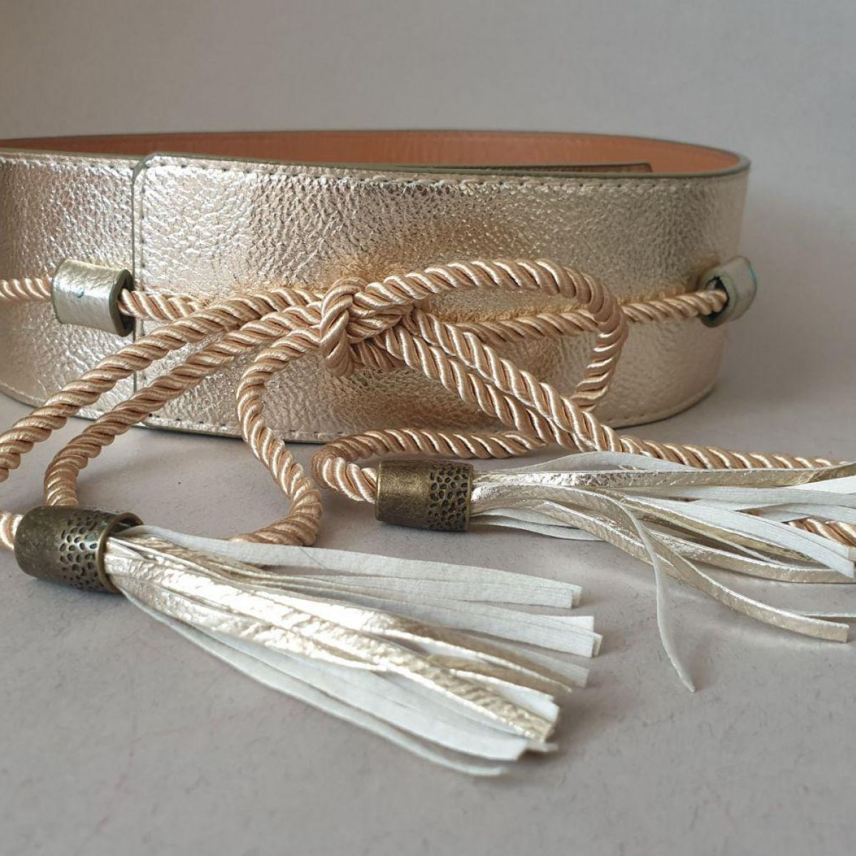 Пояс широкий, золотий з шовковистим шнуром із золотистими пензликами.