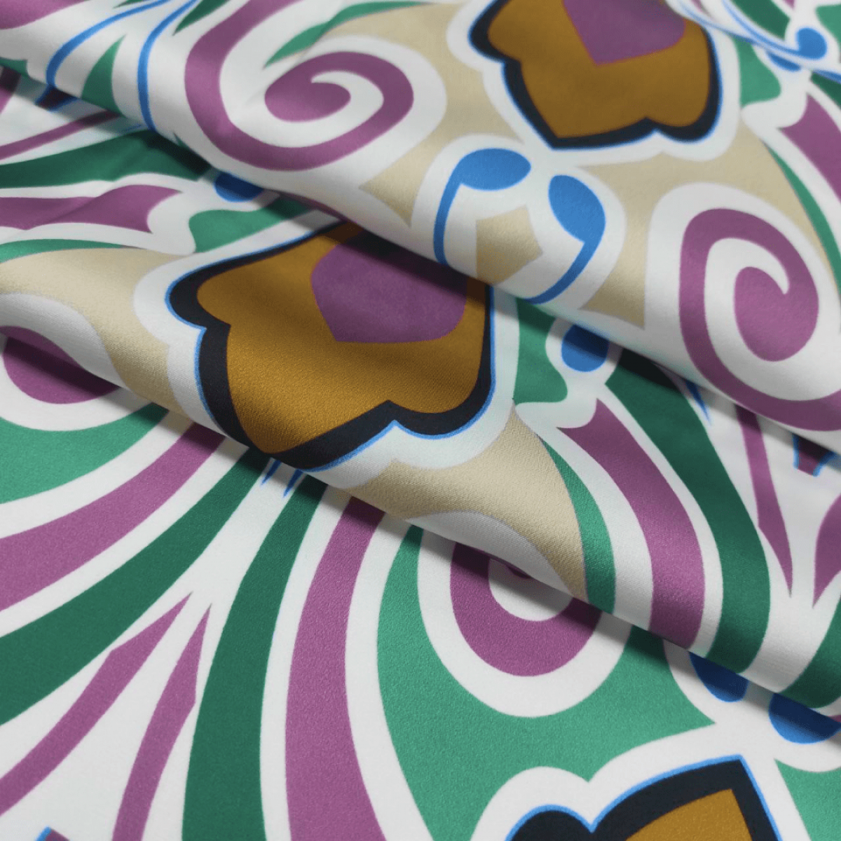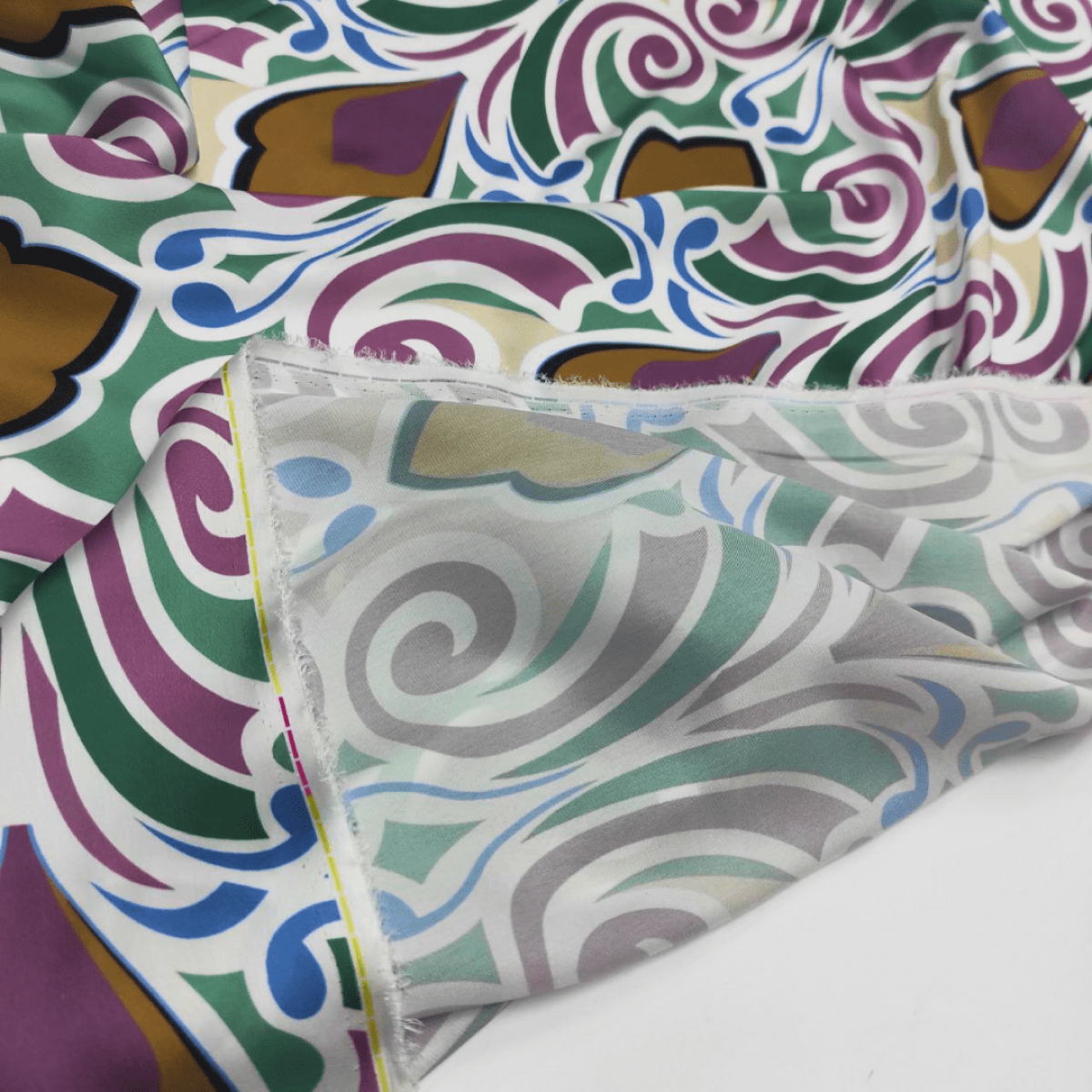 Тканина легка, тонка, в міру щільна, струминна, не прозора, з гладкою лицьовою стороною і матовою, більш бархатистою виворотною, гіпоалергенна, дихаюча, з легким глянцевим блиском, злегка тягнеться по ширині.