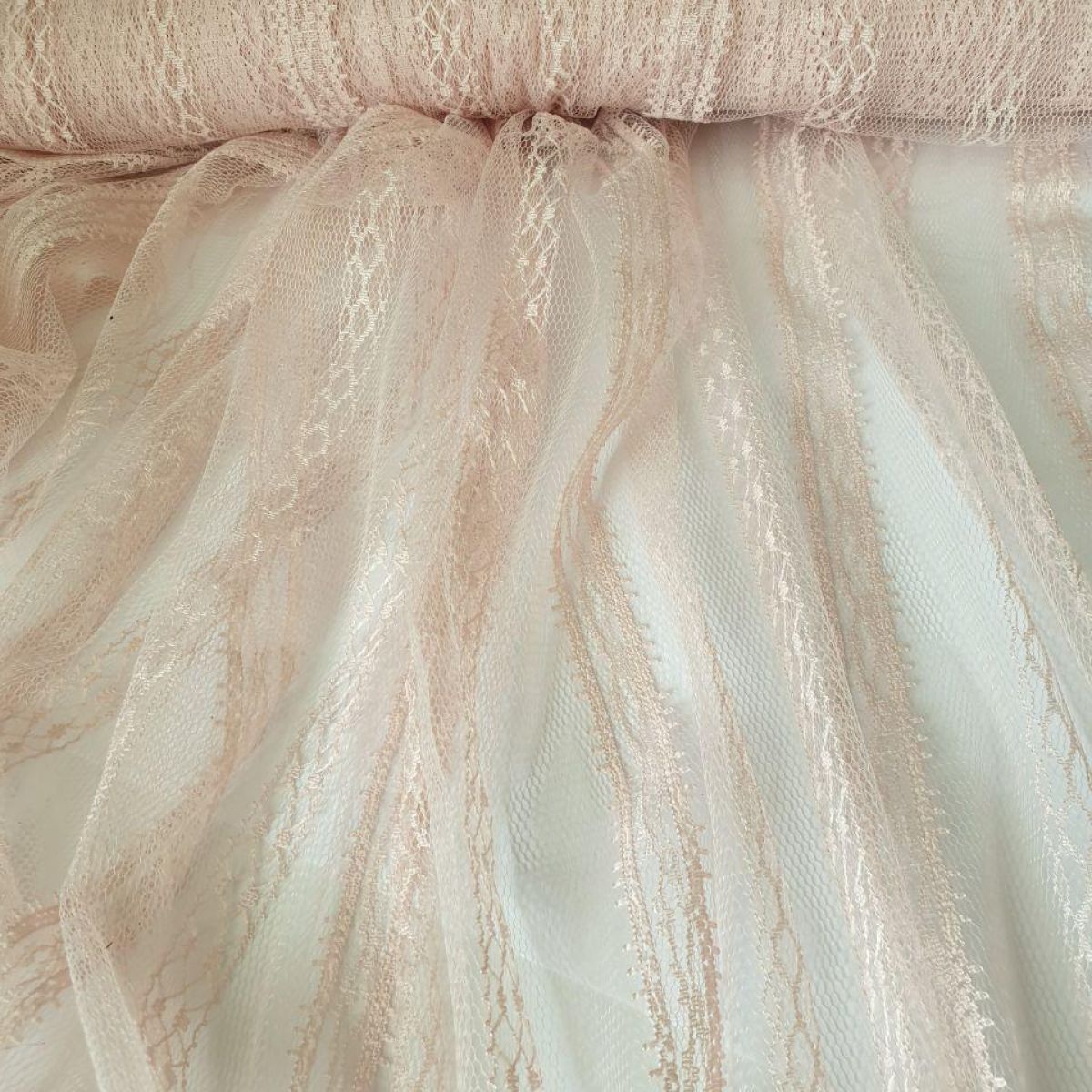 Сітка "Смуга" з мереживним малюнком D900_06 Пудра