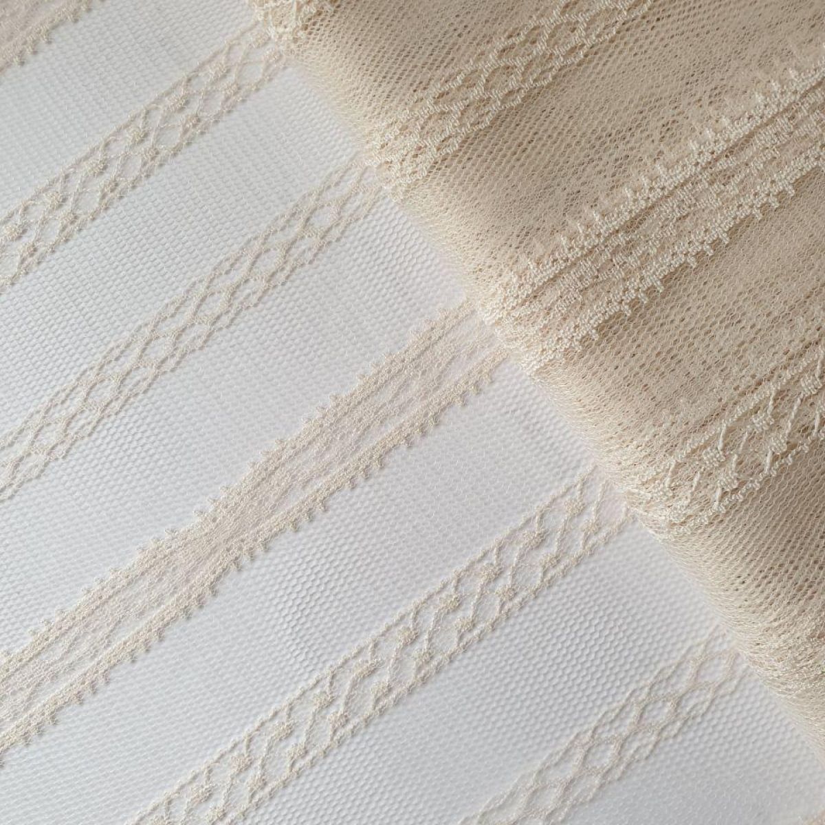 У нашому інтернет-магазині «4530 Тканини і Фурнітура» ви можете купити в Одесі, по всій Україні і не тільки, окрім РФ та РБ, сітку з мереживним малюнком «Смуга» та інші мереживні тканини і мережива оптом.